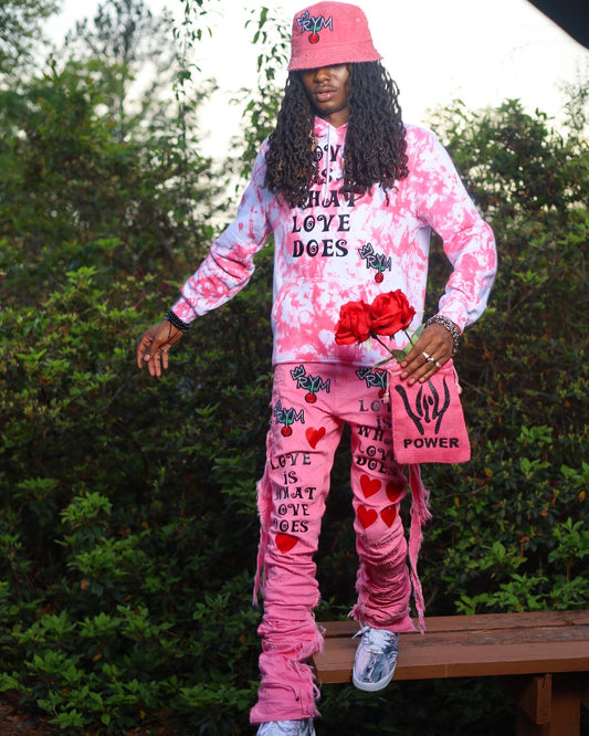 LOVE IS WHAT LOVE DOES PINK XAGGERATED DENIM